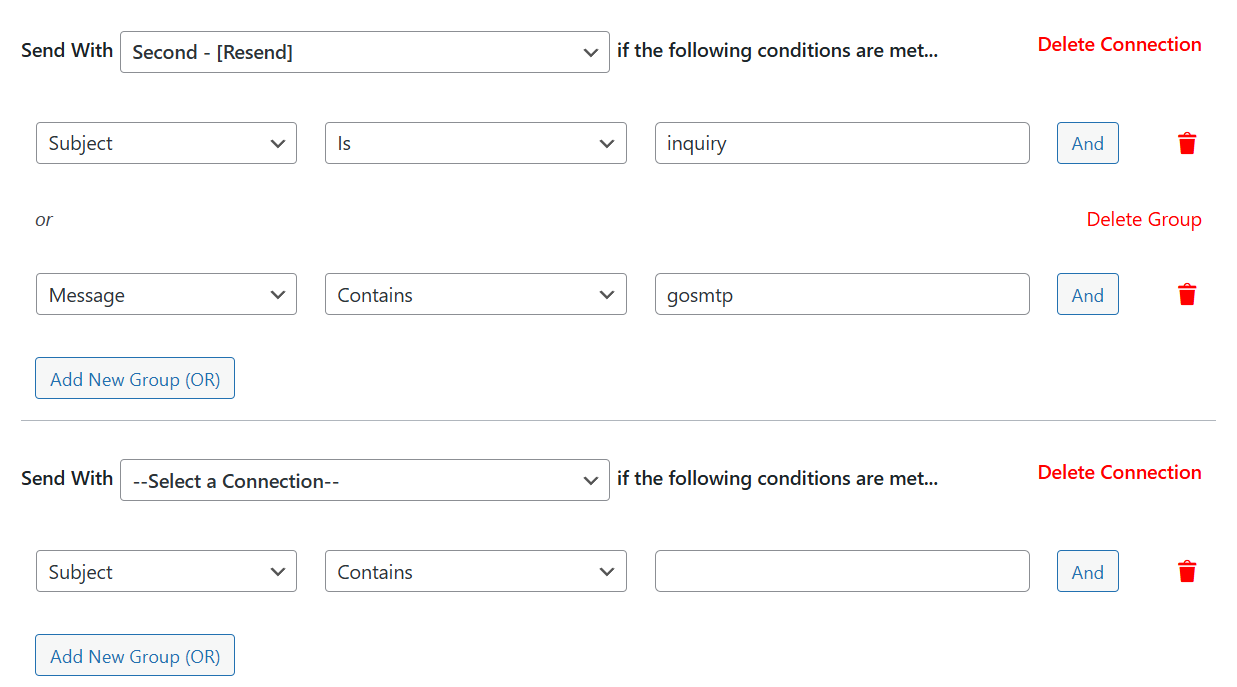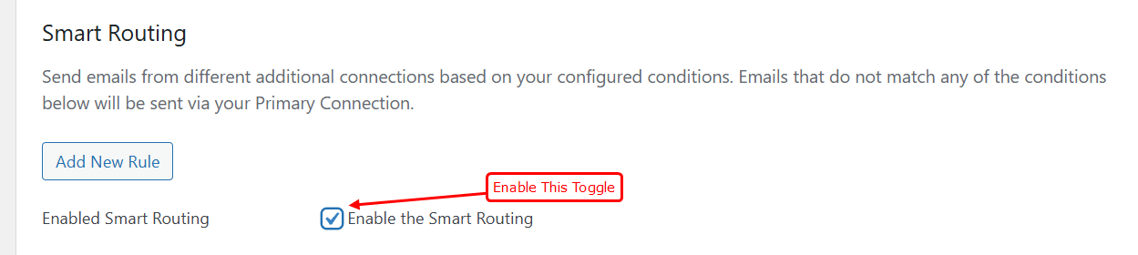 Note: if none of the conditions are met, your WordPress site will send emails using the primary connection.