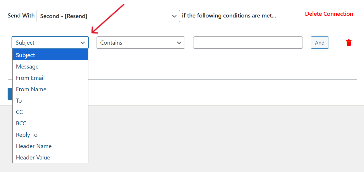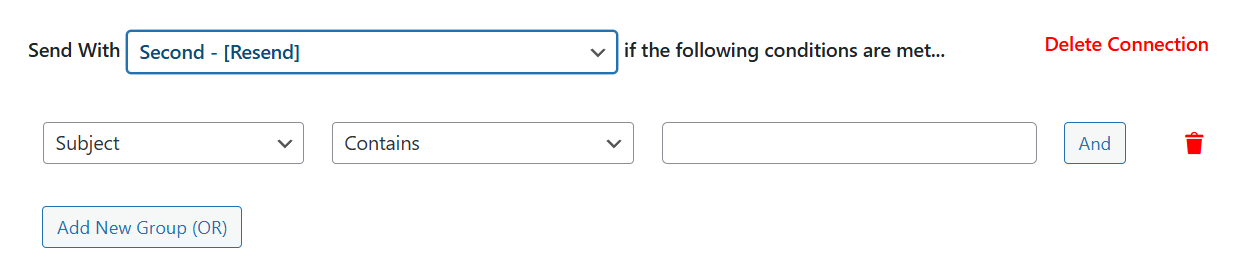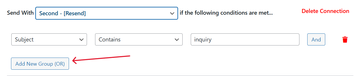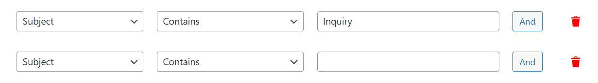 As an example, we’ll use the Resend mailer if the Subject contains the term “Inquiry”