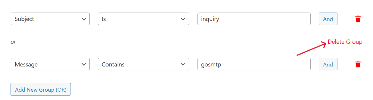If you’ve created multiple groups using the OR rule, you can delete any group by clicking the Delete Group button.