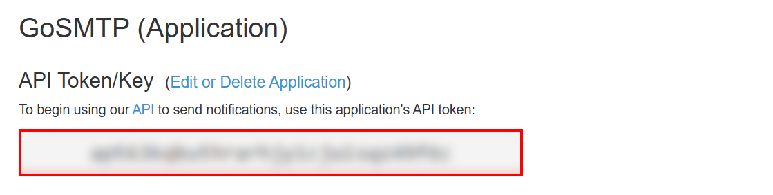 After selecting Pushover as your notification service in GoSMTP Notification Settings, you'll see a field to enter your User Key and API Token/Key.