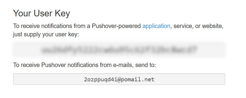 - After signing up make sure to confirm your email address which you used to sign up. When you confirm your email address it will redirect you to the pushover page where you will see your User Key and copy your User Key.